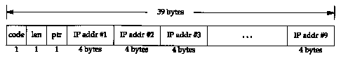 Second, record route is normally a one-way option. The sender enables the option and the receiver has to fetch all the values from the received IP header and somehow return them to the sender. In Section 7.3 we saw that most implementations of the Ping server (the ICMP echo reply function within the kernel) reflect an incoming RR list, but this doubles the number of IP addresses recorded (the outgoing path and the return path), which runs into the limit described in the next paragraph. (Traceroute requires only a working UDP module at the destination-no special server application is required.)