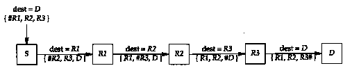 First note that each UDP datagram sent by sun has a destination of netb, not the destination host (westgate). We described this with the example shown in Figure 8.7. Similarly, the other two routers specified with the -G option (gateway and gabby) and the final destination (westgate) become the SSRR option list on the first hop.